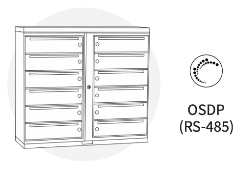 Digitala namnskyltar och elektroniska lås, kommunikation via OSDP-2, Secure Channel. En central hanterar upp till 125 fack. Eget nätverk, bara el krävs.